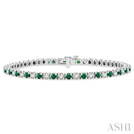 1 1/2 ctw Square Box Link 2.5MM Emerald and Round Cut Diamond Precious Tennis Bracelet in 14K White Gold