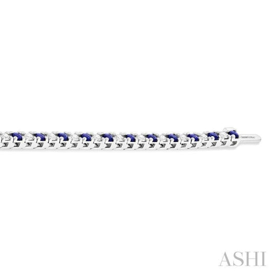 1 1/2 ctw Square Box Link 2.5MM Sapphire and Round Cut Diamond Precious Tennis Bracelet in 14K White Gold