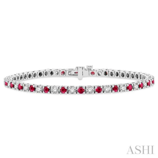 1 1/2 ctw Square Box Link 2.5MM Ruby and Round Cut Diamond Precious Tennis Bracelet in 14K White Gold