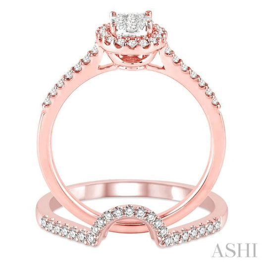1/2 Ctw Oval Shape Diamond Lovebright Wedding Set with 1/3 Ctw Engagement Ring and 1/6 Ctw Wedding Band in 14K Rose and White Gold