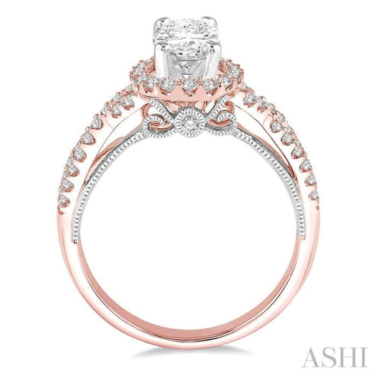 1/2 Ctw Oval Shape Crossed Shank Semi-Mount Round Cut Diamond Engagement Ring in 14K Rose and White Gold