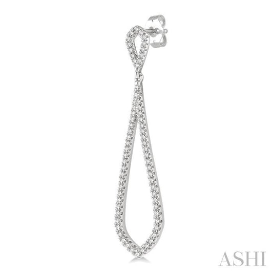 1/2 Ctw Pear Shape Round Cut Diamond Long Earring in 14K White Gold