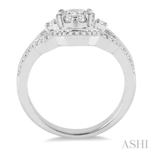 1/2 Ctw Round Cut Diamond Lovebright Ring in 14K White Gold