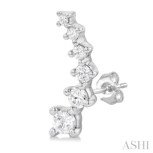 1/2 Ctw Round Cut Diamond Petite Fashion Climbers in 14K White Gold