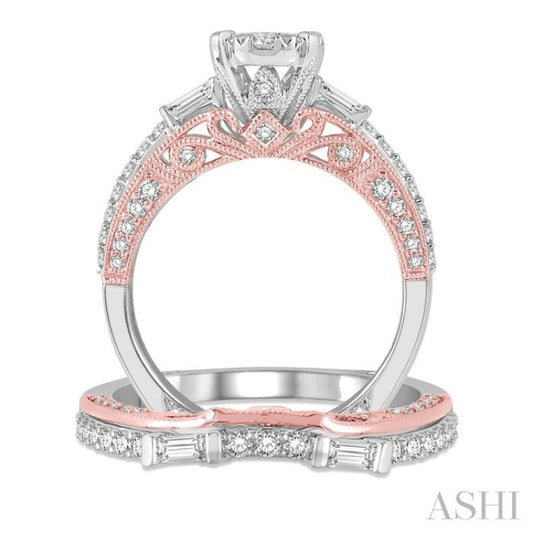 1 1/3 Ctw Diamond Lovebright Wedding Set with 1 Ctw Engagement Ring in White & Rose Gold and 1/3 Ctw Wedding Band in White and Rose Gold in 14K