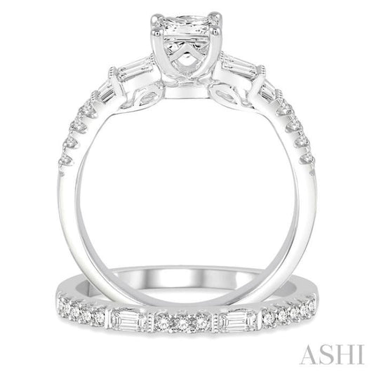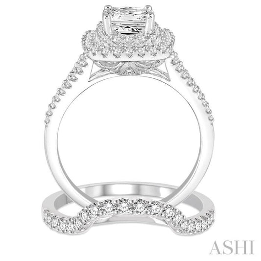 1 1/3 Ctw Diamond Bridal Set with 1 Ctw Princess Cut Engagement Ring and 1/4 Ctw Wedding Band in 14K White Gold