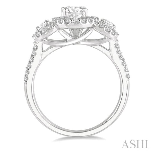 1 1/2 Ctw Triple Oval Shape Diamond Ladies Engagement Ring in 14K White Gold