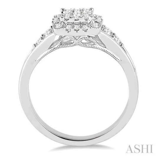 1/2 Ctw Square Shape Round Cut Diamond Lovebright Ring in 14K White Gold