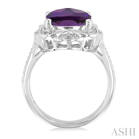 1/20 ctw Cushion Cut 10X10 MM Amethyst and Round Cut Diamond Semi Precious Ring in Sterling Silver