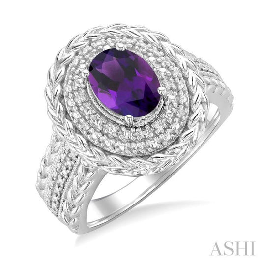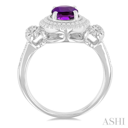 1/20 ctw Oval Cut 8X6MM Amethyst and Round Cut Diamond Semi Precious Ring in Silver