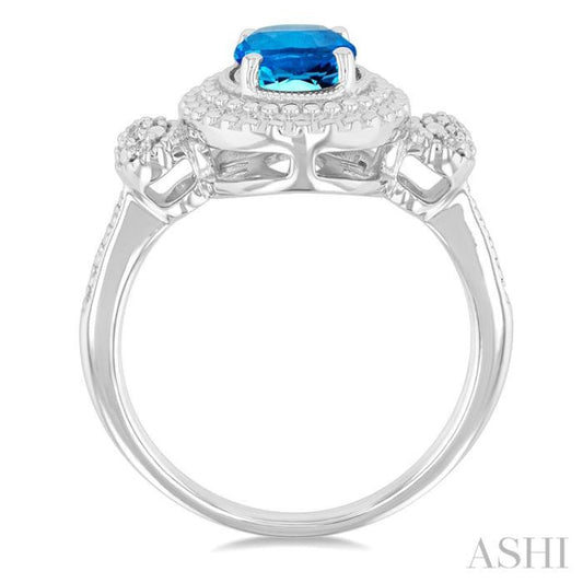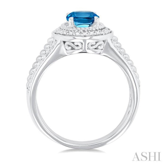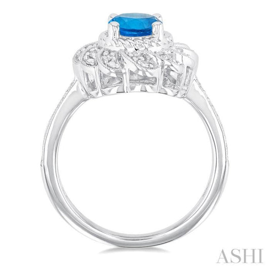 1/20 ctw Oval Cut 8X6MM Blue Topaz and Round Cut Diamond Semi Precious Ring in Sterling Silver