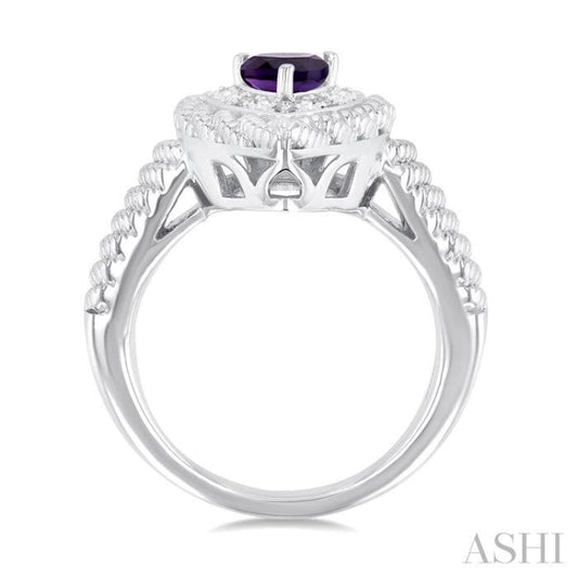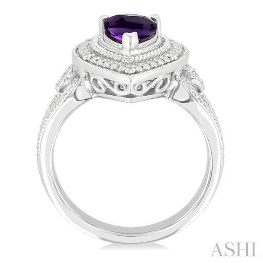 1/20 ctw Pear Cut 9X6 MM Amethyst and Round Cut Diamond Semi Precious Ring in Sterling Silver