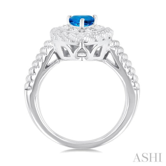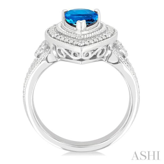 1/20 ctw Pear Cut 7X5MM Blue Topaz and Round Cut Diamond Semi Precious Ring in Sterling Silver