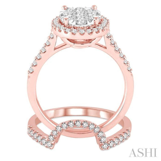 1 1/4 Ctw Oval Shape Diamond Lovebright Wedding Set with 1 Ctw Engagement Ring and 1/4 Ctw Wedding Band in 14K Rose and White Gold