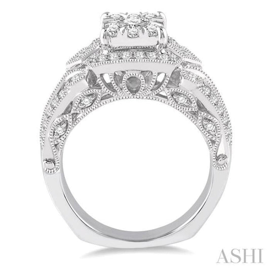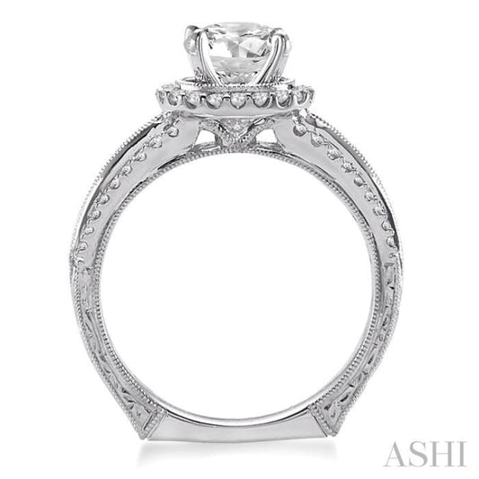 1 1/5 Ctw Diamond Lovebright Vintage Inspired Engagement Ring in 14K White Gold