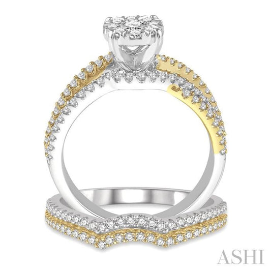 1 1/4 ctw Lovebright Round Cut Diamond Wedding Set With 1 ctw Round Split Shank Engagement Ring and 1/4 ctw Wedding Band in 14K White and Yellow Gold
