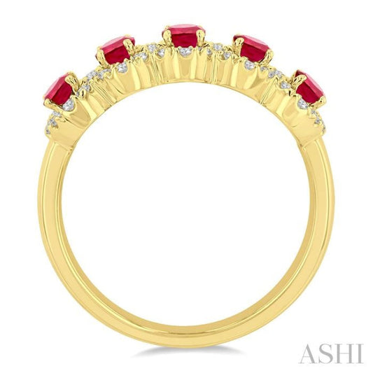 1/3 ctw Oval Cut 4x3 MM Precious Ruby and Round Cut Diamond Wedding Band in 14K Yellow Gold