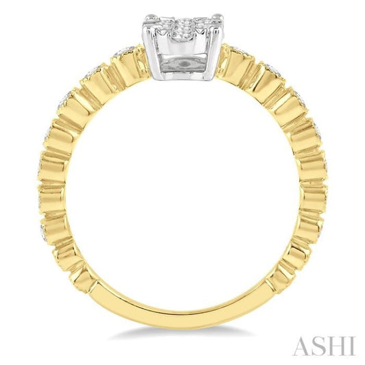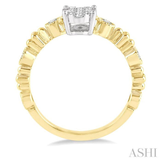 1/3 Ctw Oval Shape Lattice Shank Lovebright Diamond Cluster Ring in 14K Yellow and White Gold