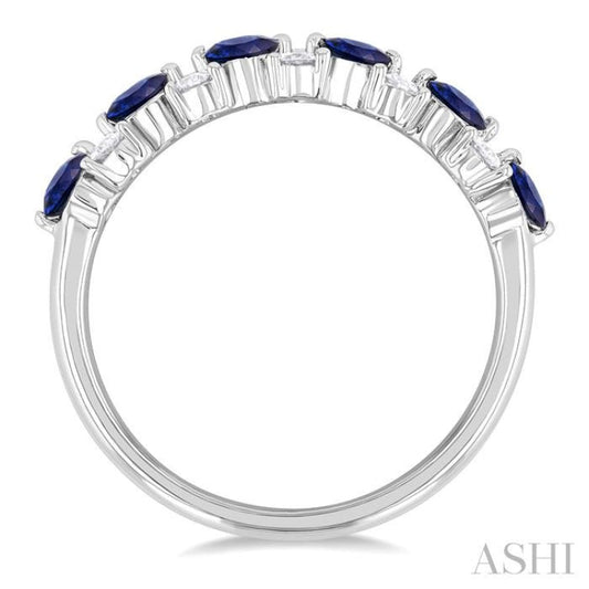 1/3 ctw Round Cut 3MM Sapphire and Diamond Precious Band in 14K White Gold