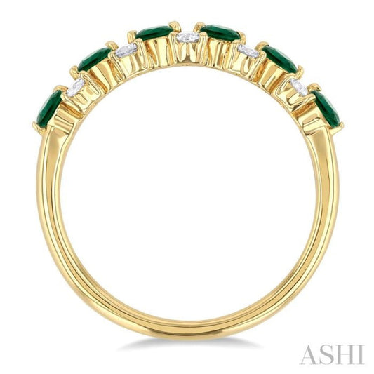 1/3 ctw Round Cut 2.7MM Emerald and Diamond Precious Band in 14K Yellow Gold