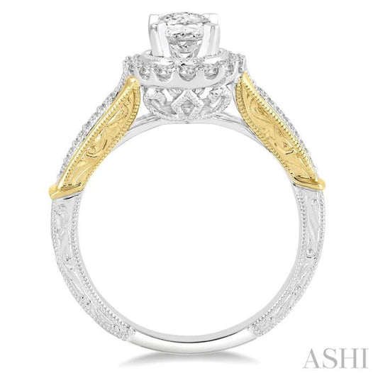 1 1/6 Ctw Diamond Engagement Ring with 3/4 Ct Oval Cut Center Stone in 14K White and Yellow Gold