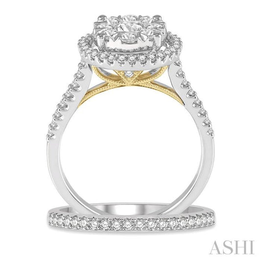 1 1/5 ctw Lovebright Diamond Wedding Set With 1 ctw Round Shape Two Tone Engagement Ring in 14K White and Yellow Gold and 1/5 ctw Wedding Band in 14K