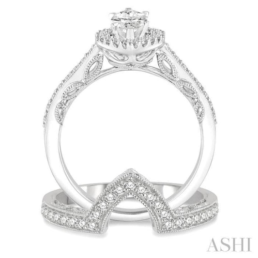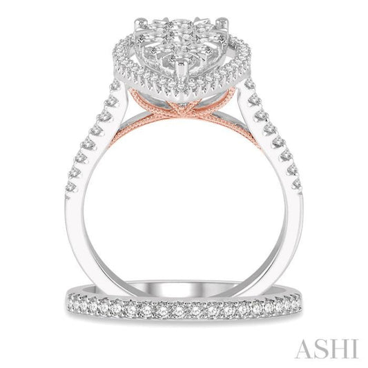 1 1/5 Ctw Lovebright Diamond Wedding Set With 1 Ctw Pear Shape Engagement Ring and 1/5 Ctw Wedding Band in 14K White and Rose Gold
