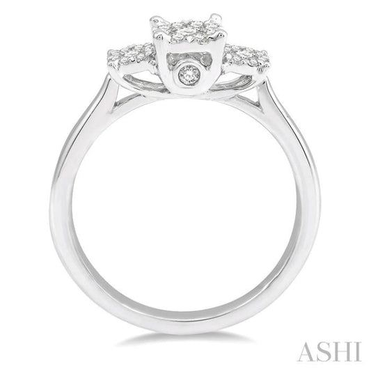 1/3 ctw Triple Circular Head Lovebright Round Cut Diamond Ring in 14K White Gold