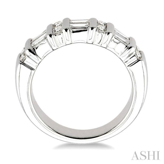 1 Ctw Baguette and Round Cut Diamond Fashion Band in 14K White Gold