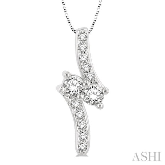 1 Ctw Asymmetrical 2Stone Round Cut Diamond Pendant With Box Link Chain in 14K White Gold