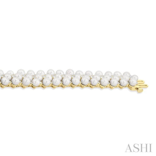 1 ctw 4 MM Cultured Pearl and Round Cut Diamond Fashion Bracelet in 14K Yellow Gold
