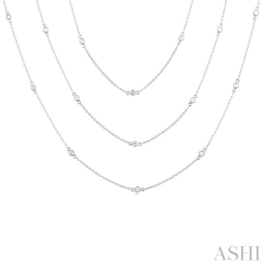 1 ctw Bezel Set Round Cut Diamond Long Station Necklace in 14K White Gold