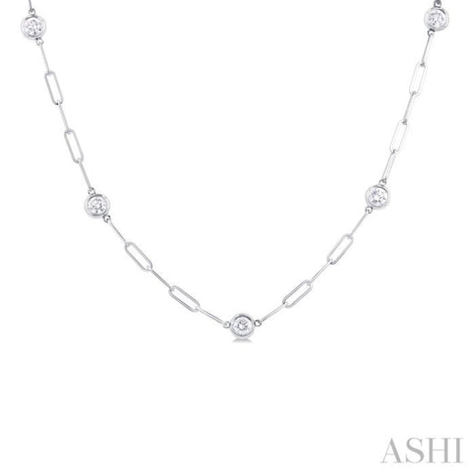 1 ctw Bezel Set Round Cut Diamond Paper Clip Station Necklace in 14K White Gold