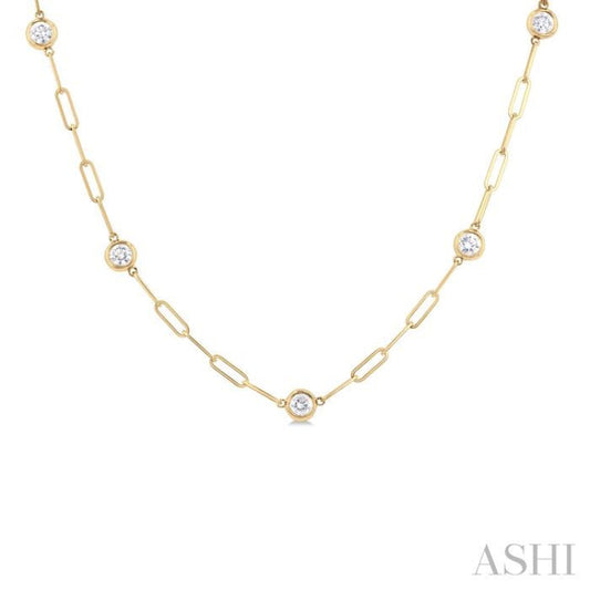 1 ctw Bezel Set Round Cut Diamond Paper Clip Station Necklace in 14K Yellow Gold