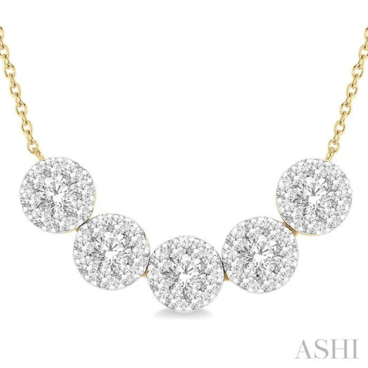 1 Ctw 5-Stone Circular Mount Lovebright Round Cut Diamond Necklace in 14K Yellow & White Gold
