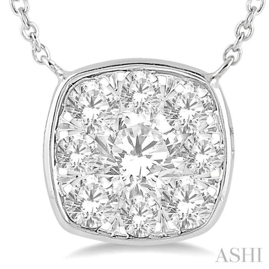1 Ctw Cushion Shape Lovebright Diamond Necklace in 14K White Gold