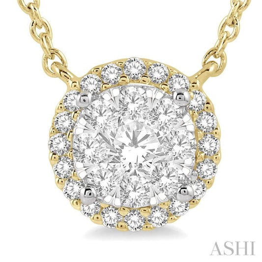 1 ctw Circular Round Cut Diamond Lovebright Necklace in 14K Yellow and White Gold