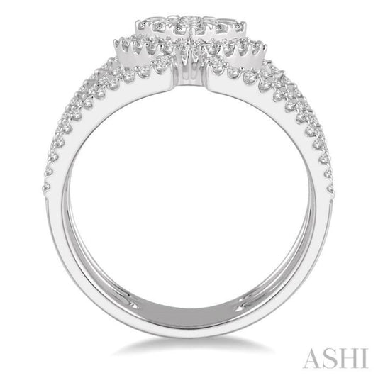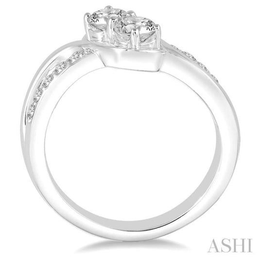 1 Ctw Cross Over Embraced Center Round Cut Diamond 2Stone Ring in 14K White Gold
