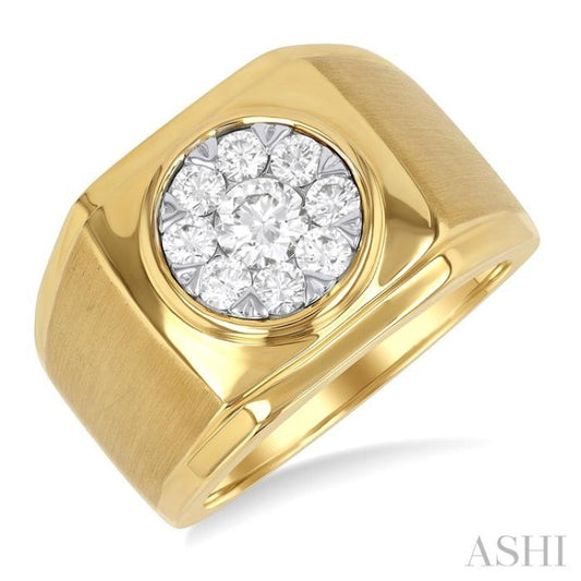 1 ctw Circular Wide Shank Lovebright Round Cut Diamond Men's Ring in 14K Yellow and White Gold
