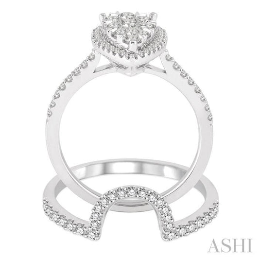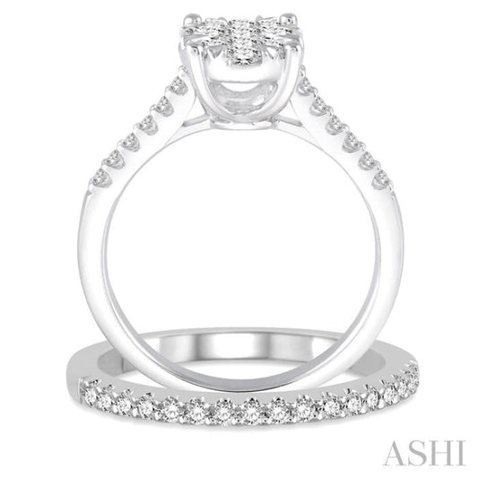 1 Ctw Diamond Lovebright Wedding Set with 3/4 Ctw Engagement Ring and 1/4 Ctw Wedding Band in 14K White Gold