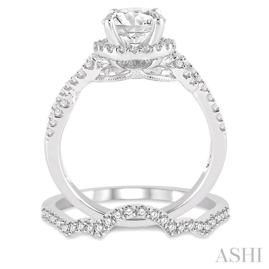 1 Ctw Diamond Semi-mount Engagement Ring in 14K White Gold