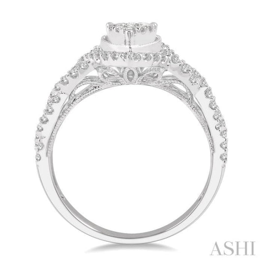 1 ctw Entwined Pear Shape Lovebright Round Cut Diamond Ring in 14K White Gold