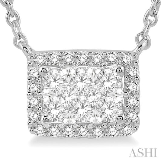 1 ctw Emerald Shape Round Cut Diamond Lovebright Necklace in 14K White Gold
