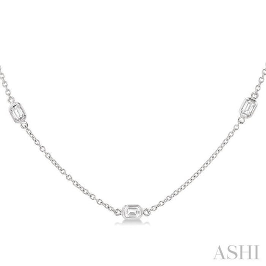 1 Ctw Emerald Cut Diamond Fashion Necklace in 14K White Gold