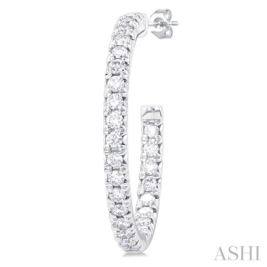 1 Ctw French Pave Set Round Cut Diamond Fashion Half Hoop Earring in 14K White Gold