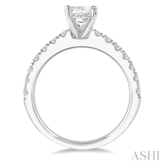 1 1/10 Ctw Princess Cut Diamond Ladies Engagement Ring with 5/8 Ct Princess Cut Center Stone in 14K White Gold