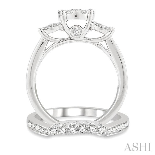 1 1/10 ctw Lovebright Diamond Wedding Set With 3/4 ctw Circular Tri-Mount Engagement Ring and 1/3 ctw Straight Row Wedding Band in 14K White Gold