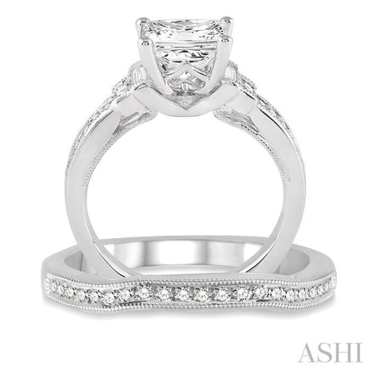 1 1/10 Ctw Diamond Wedding Set with 7/8 Ctw Princess Cut Engagement Ring and 1/5 Ctw Wedding Band in 14K White Gold