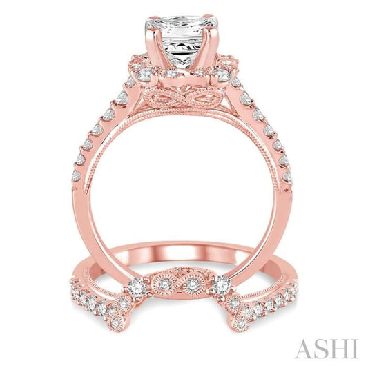 1 1/10 Ctw Diamond Wedding Set with 7/8 Ctw Princess Cut Engagement Ring and 1/4 Ctw Wedding Band in 14K Rose Gold