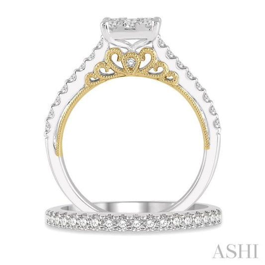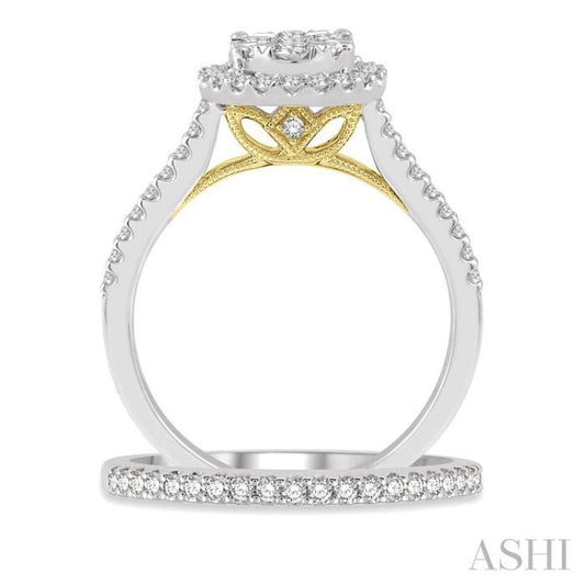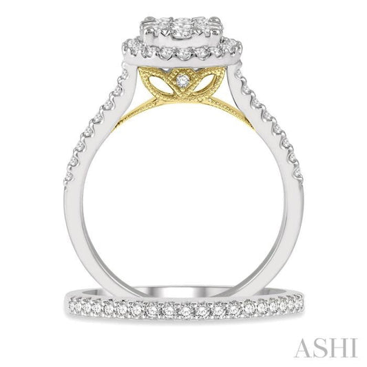 1 ctw Lovebright Diamond Wedding Set With 3/4 ctw Round Shape Two Tone Engagement Ring in 14K White and Yellow Gold and 1/5 ctw Wedding Band in 14K